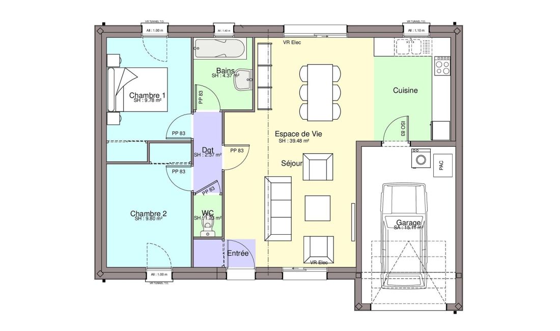 - Mode de chauffage au choix : aérothermie, gaz...