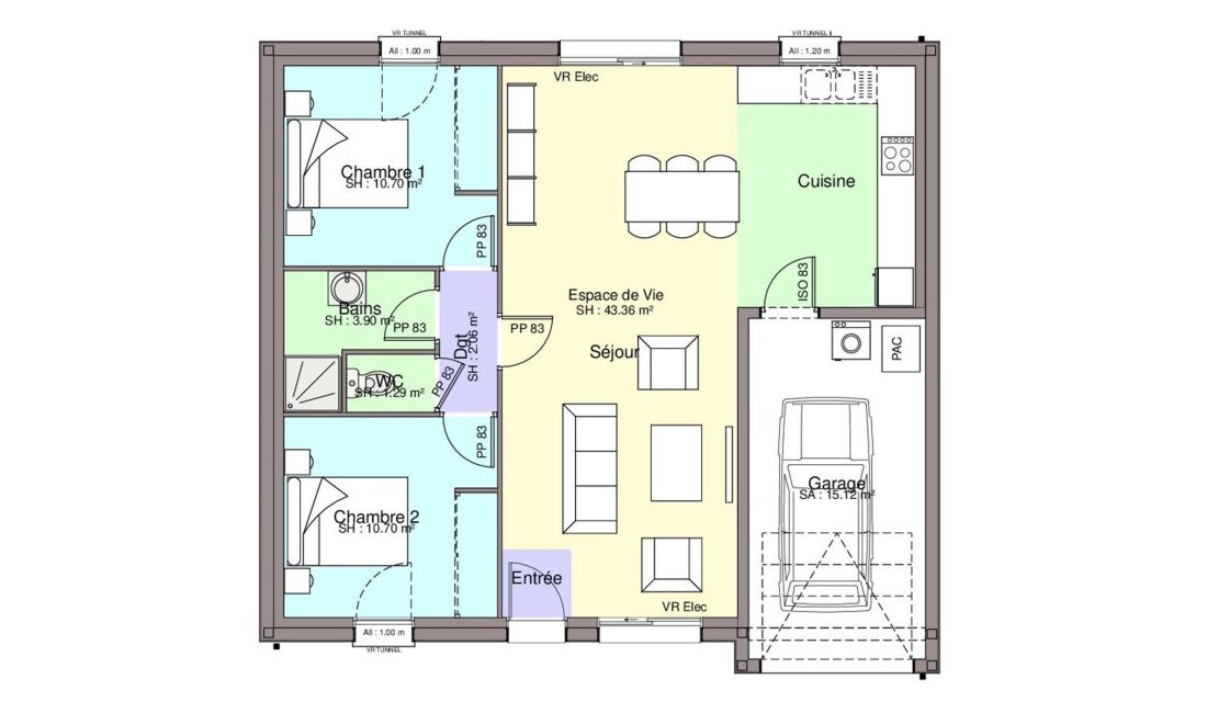 - Mode de chauffage au choix : aérothermie, gaz...
