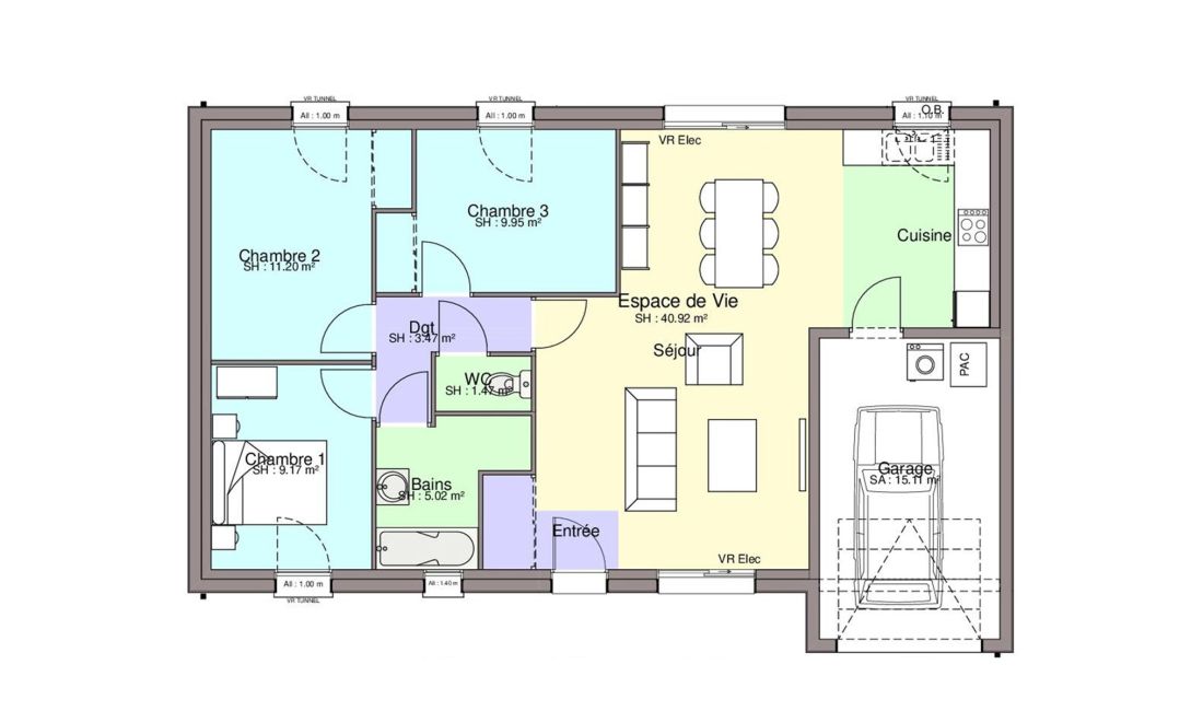 - Mode de chauffage au choix : aérothermie, gaz...